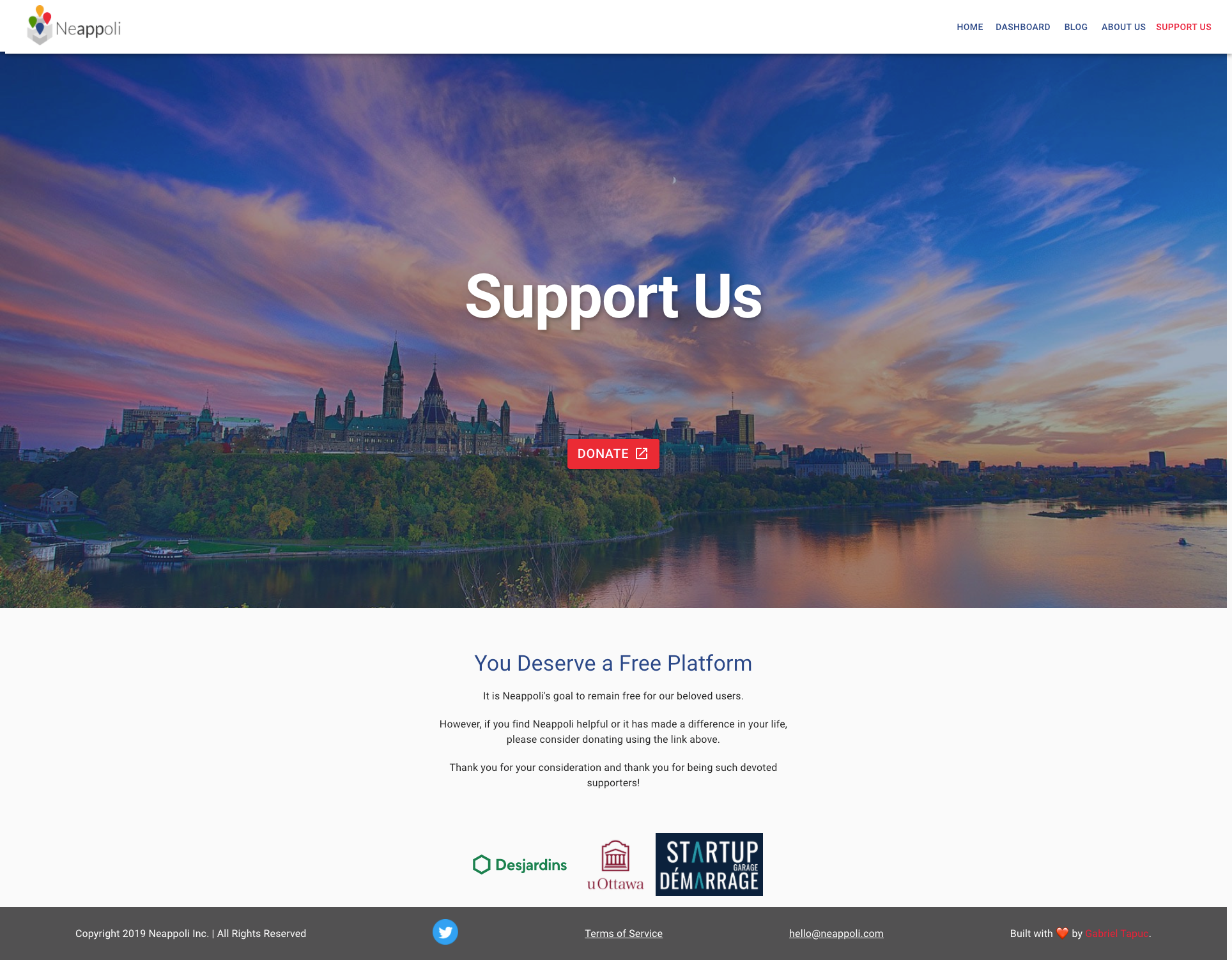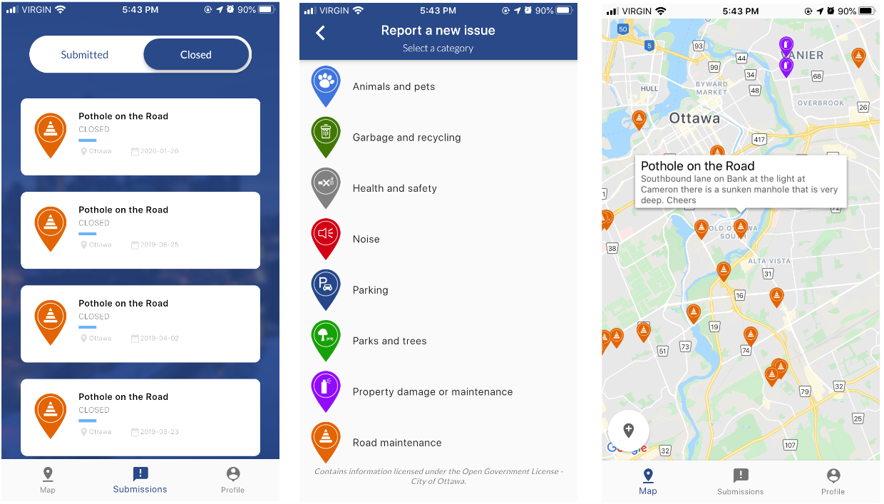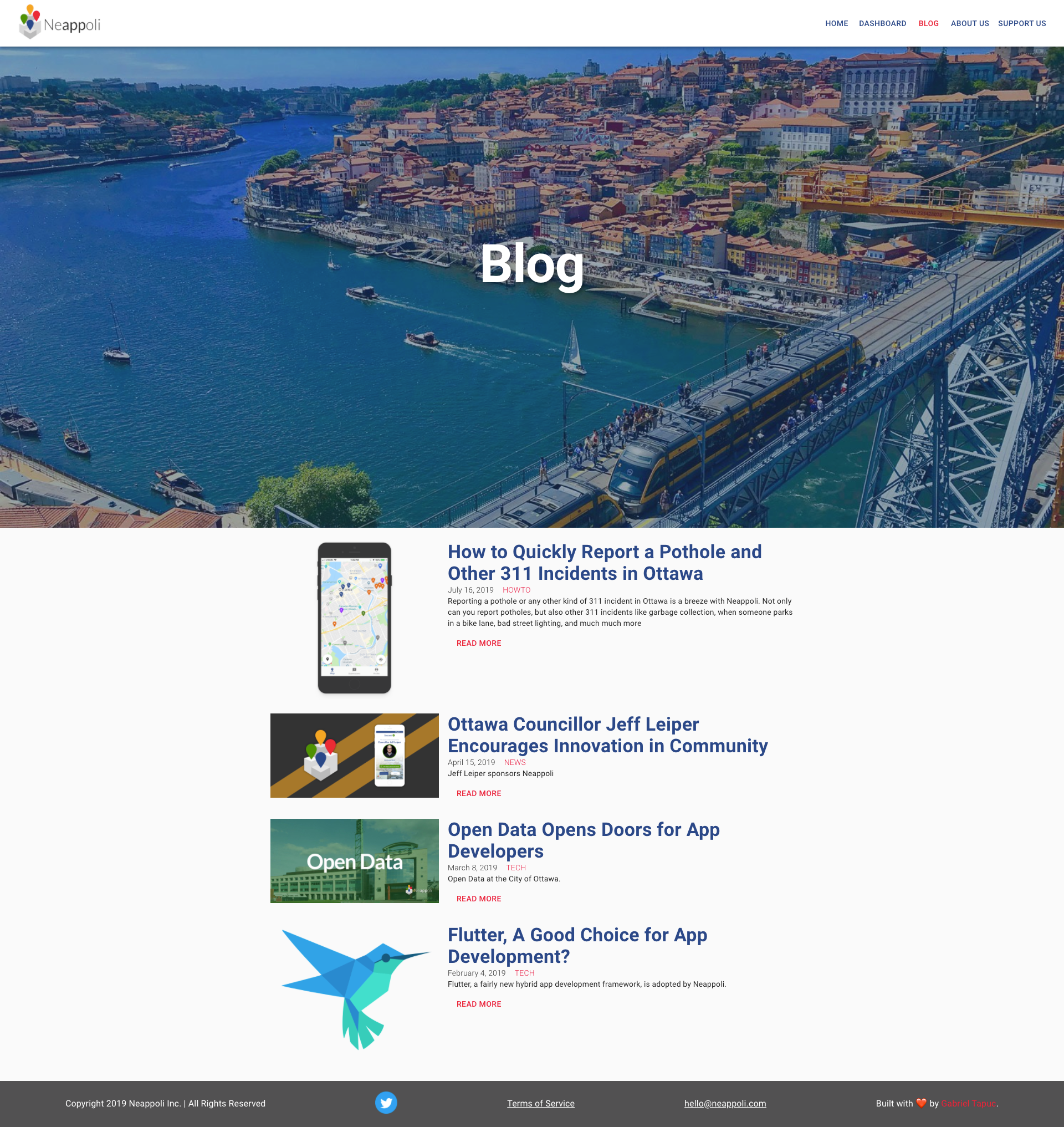 Neappoli is a mobile application that makes the process of submitting city issues very convenient: in a few taps, users will be able to submit non-urgent 3-1-1 issues without having to call the city. In a few taps, they can send and track a geotagged issue that has all the required information the city requires. Neappoli was built using Firebase and Flutter for reliability and cost saving purposes. It is currently serving the citizens of our national capital, Ottawa.